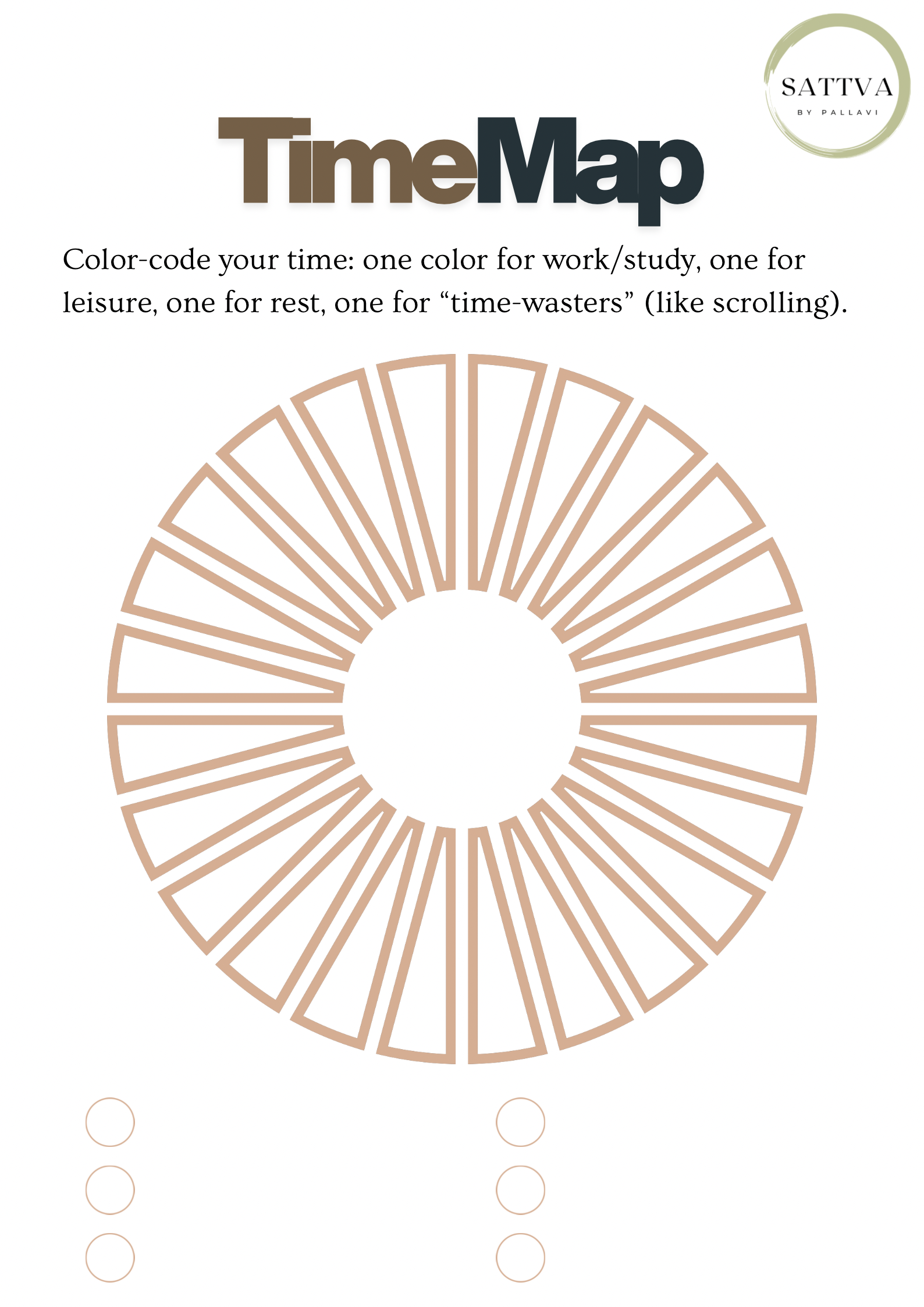 - Now, redraw a “dream Time-map”, how you’d ideally spend your 24 hours. Even small tweaks (like turning one hour of scrolling into reading or exercise) can change everything.